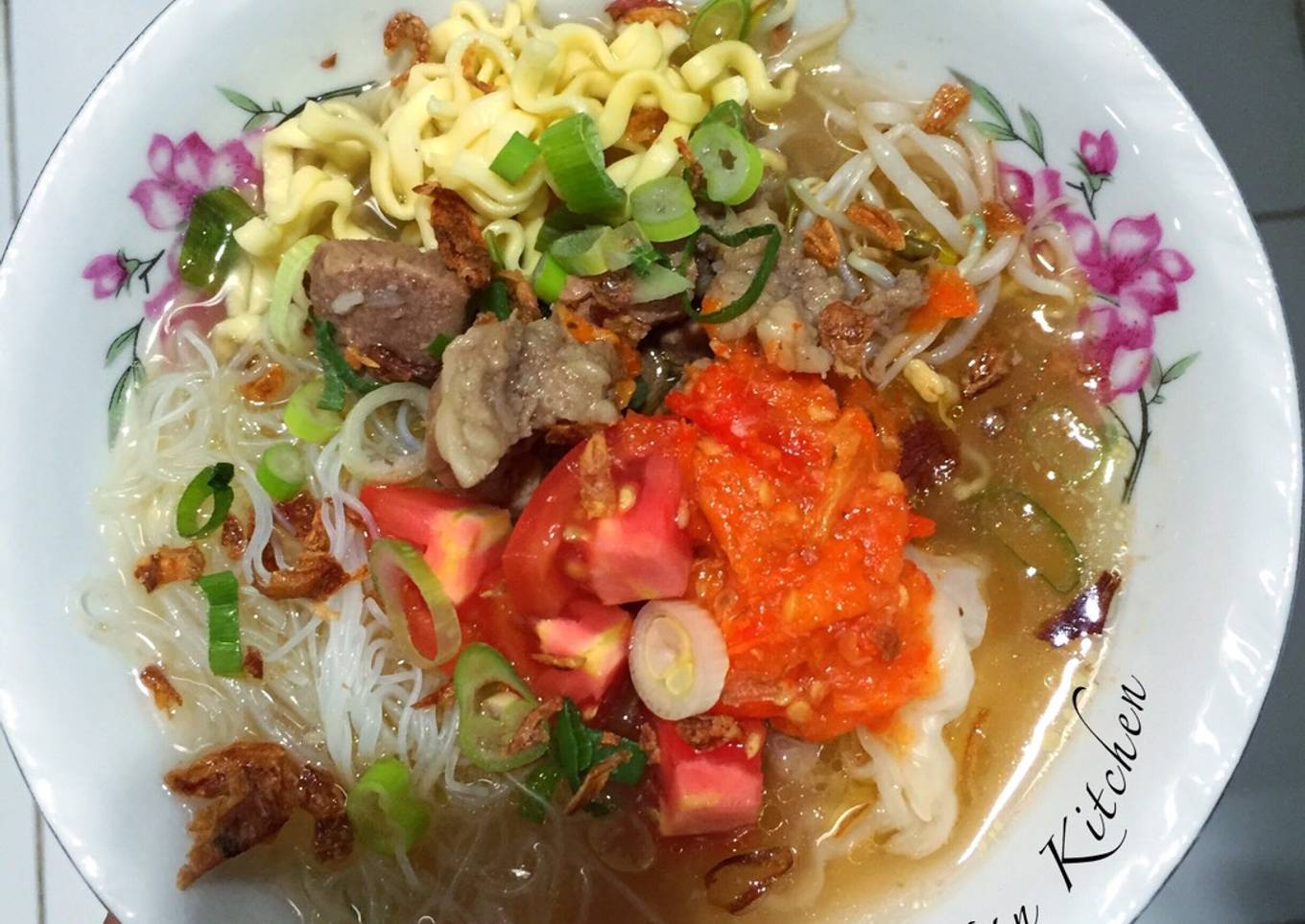 - Penyajian : siapkan mangkuk. Ambil secukupnya mie, bihun, tauge, potongan tomat, potongan risoles, siram dengan kuah daging. Kucuri dengan jeruk nipis, taburan bawang goreng & daun bawang. Plus sambal,,, aduh ngebayanginnya aja udah mau bikin lagi deh๐๐คค๐คค