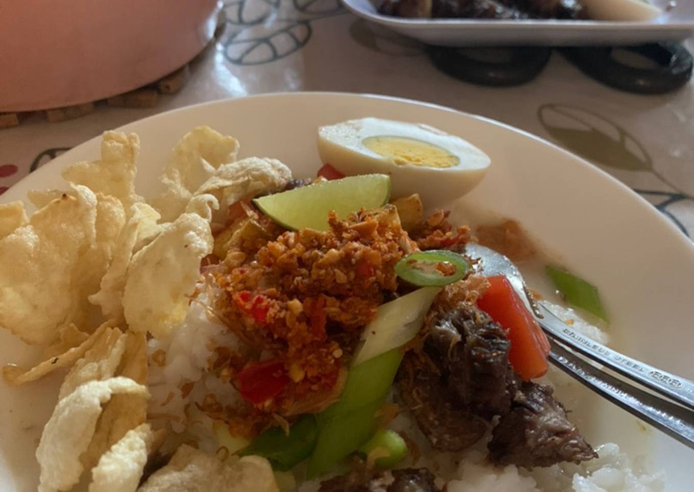 - Tumis bumbu halus bersama bumbu lainnya, masukan daging kemudian tambahkan kaldu rebusan daging