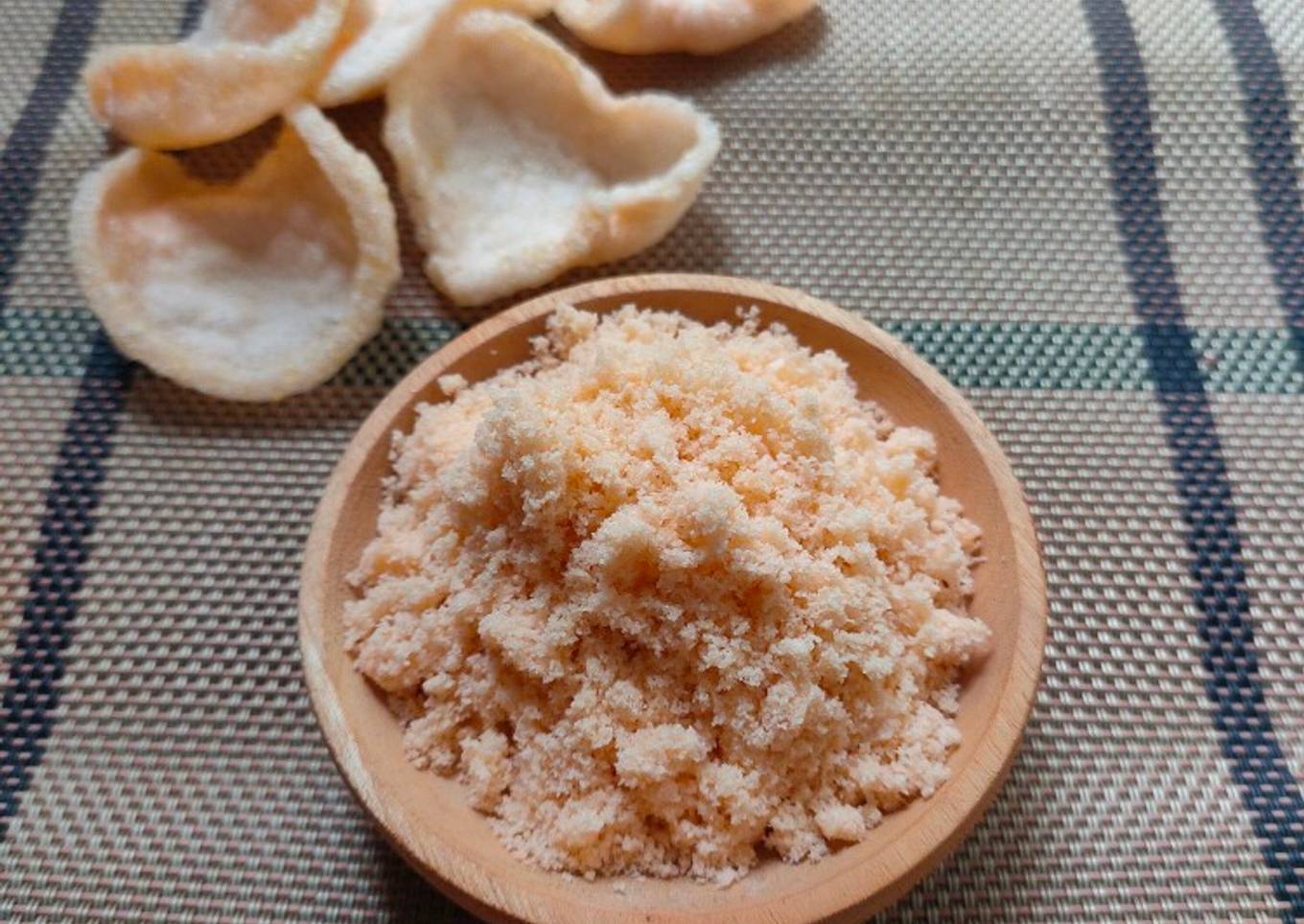 - Kalau tidak punya bawang putih bubuk, bisa di ganti dengan bawang putih goreng, lalu haluskan bersama kerupuk.
