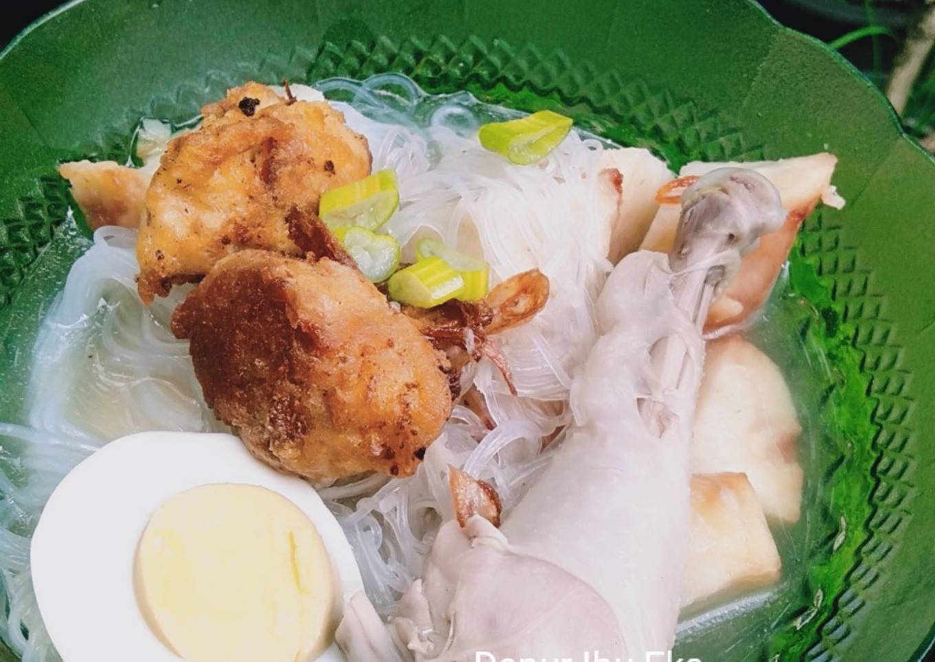 - Penyajian: Potong ketupat, masukan soun, telur, perkedel, daun bawang, bawang goreng. Siram dengan kuah soto (biasanya ayam disuir kalo saya ayam dibiarkan utuh),tambahkan sambal, kecap asin, kucuri jeruk nipis. Rasanya enak banget, seger dan ga bosenin....