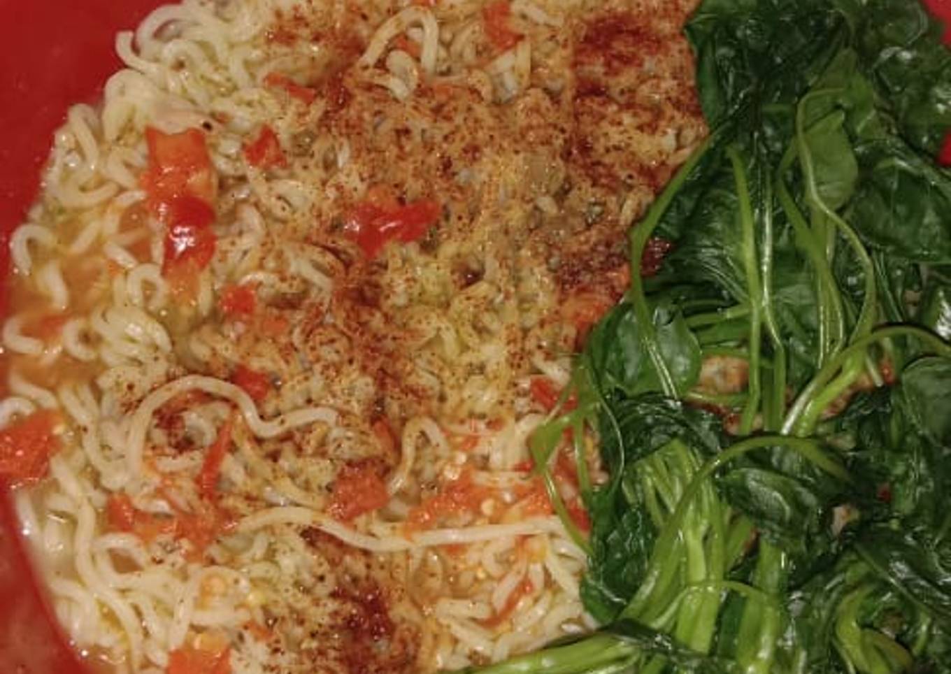 - Panaskan air sampai mendidih masukan mie cabe kangkung