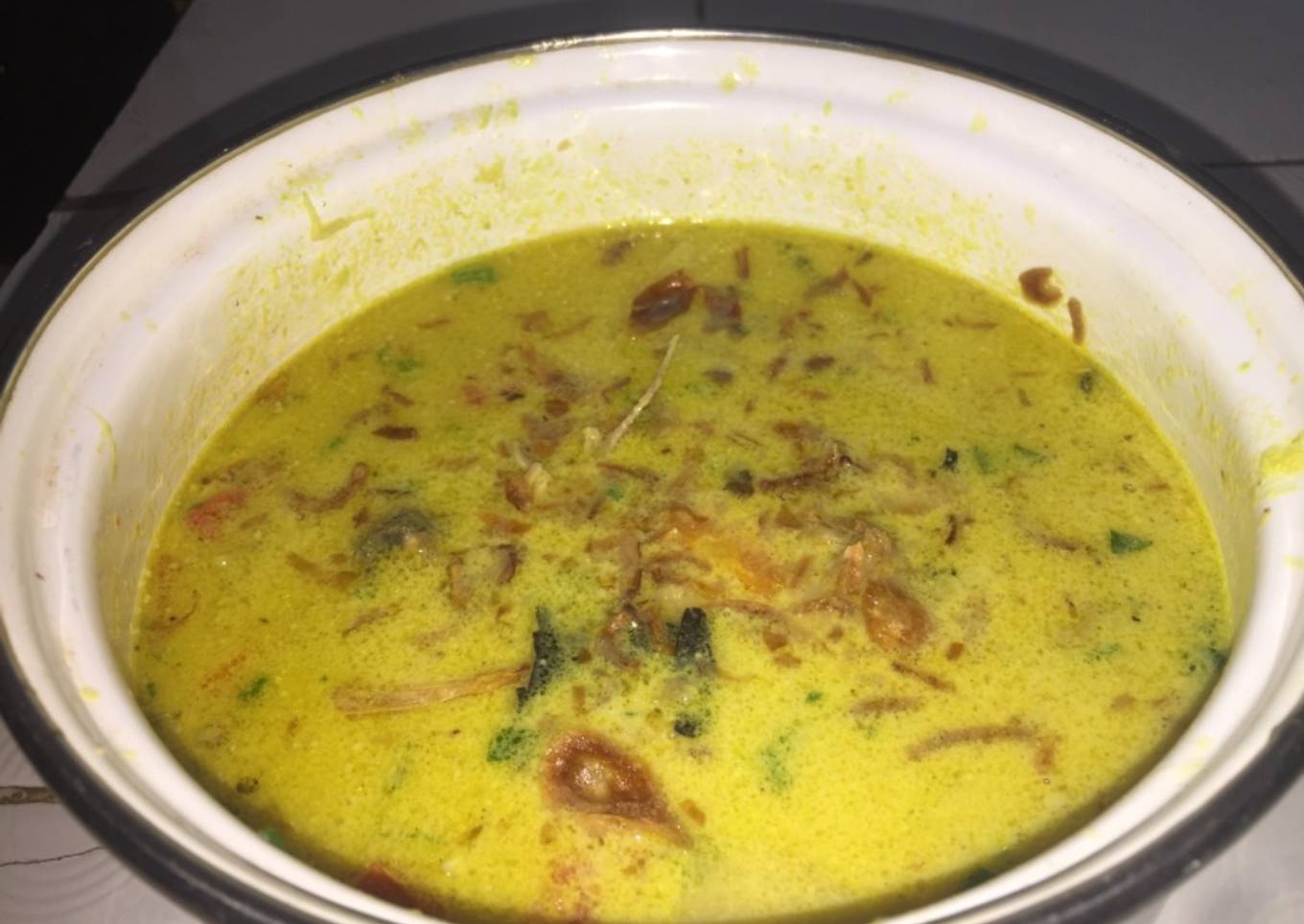 - Haluskan bumbu halus, lalu tumis jika sudah mulai wangi masukkan bahan cemplung lalu tambahkan santan sedikit demi sedikit