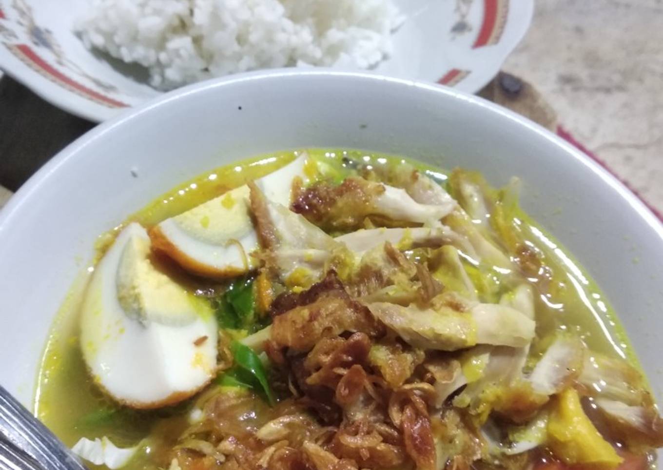 - Soun+suiran ayam+bawang goreng+telor rebus