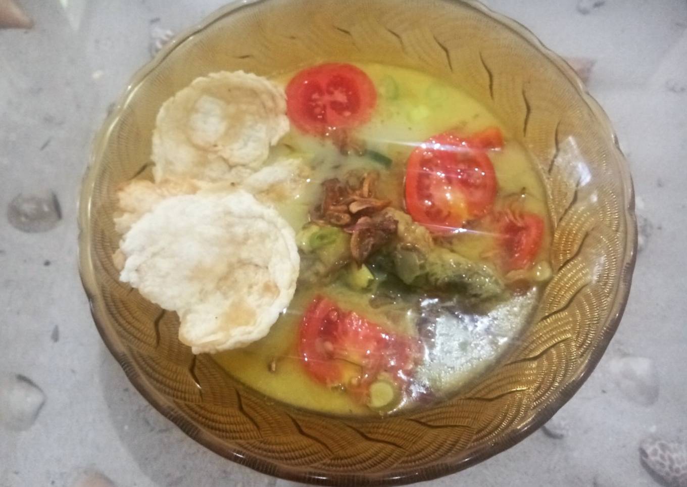 - Ambil tomat, iris2 tomat. Kemudian siapkan sayuran yg sudah direbus dan di iris tipis2 serta ayam yg sudah disuwir, sledri, dan emping goreng