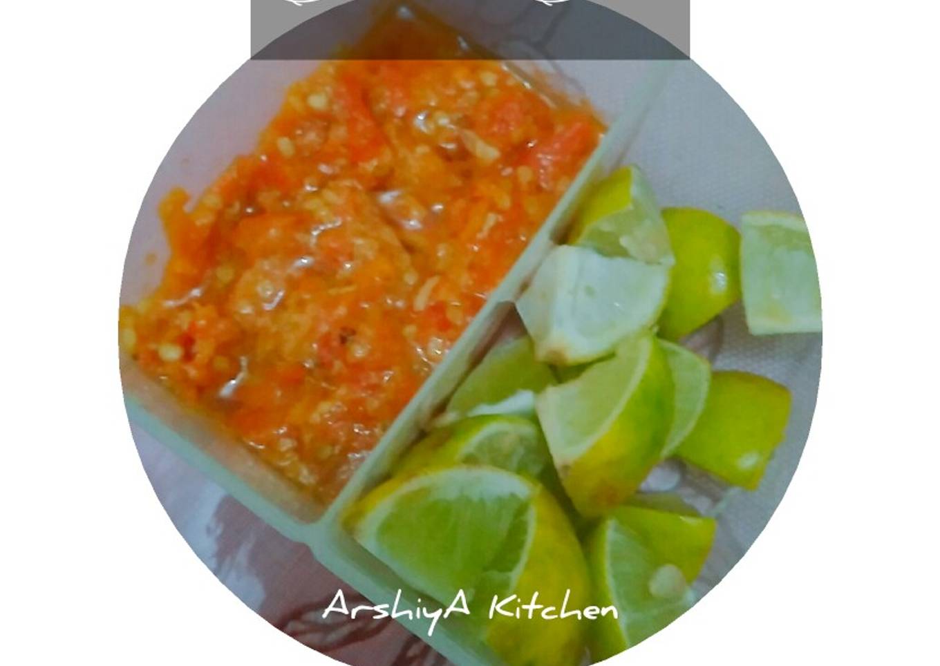 - Ulek cabai dan bawang yang sudah di rebus, kalau saya uleg kasar lalu tambahkan sejumput garam