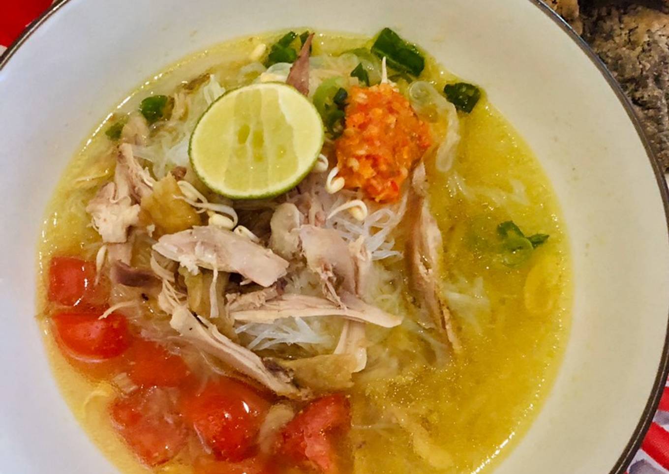 - Soto Semarang siap disajikan dengan bahan pelengkap.